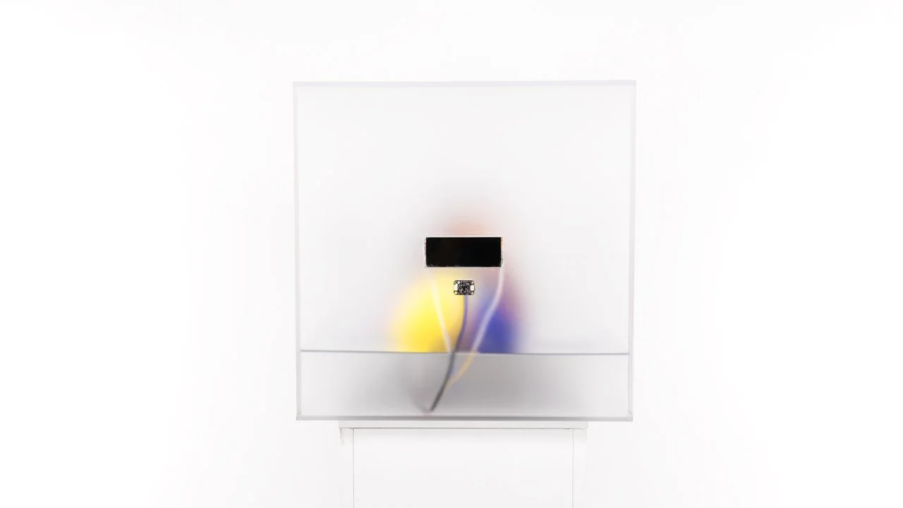 Anti-Self is an interactive installation featuring a translucent cube with shutter glass panels on all four sides. When no one is nearby, the glass remains opaque, concealing the interior. As viewers approach, sensors detect their presence, causing the panels to turn transparent and revealing a mirrored sculpture inside. Composed of seven mirrored surfaces, the sculpture reflects the viewer’s gaze in seven different colors, regardless of their vantage point.